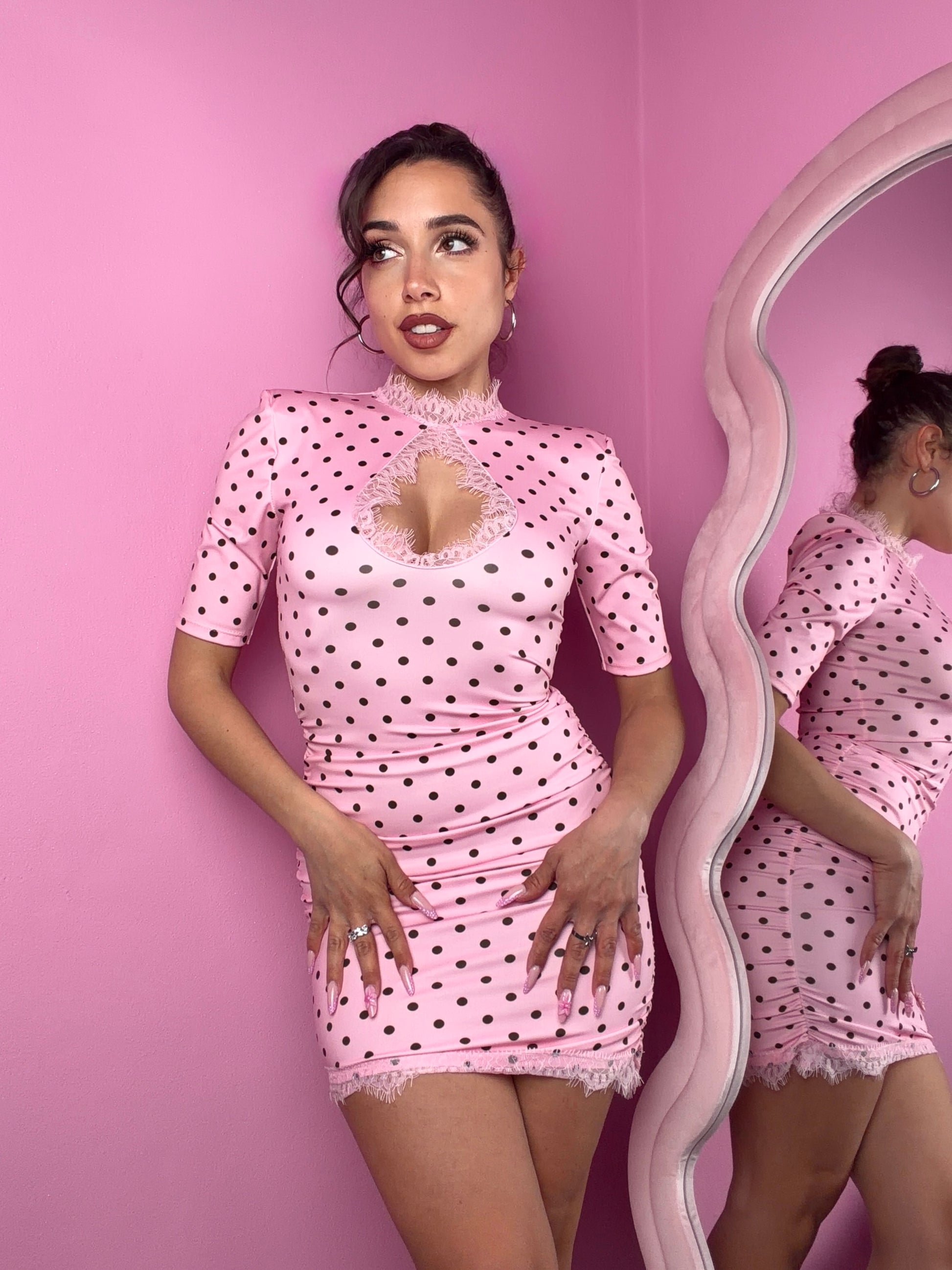 Abito aderente elasticizzato, sullo stesso modello Jenner, ma pois✨
