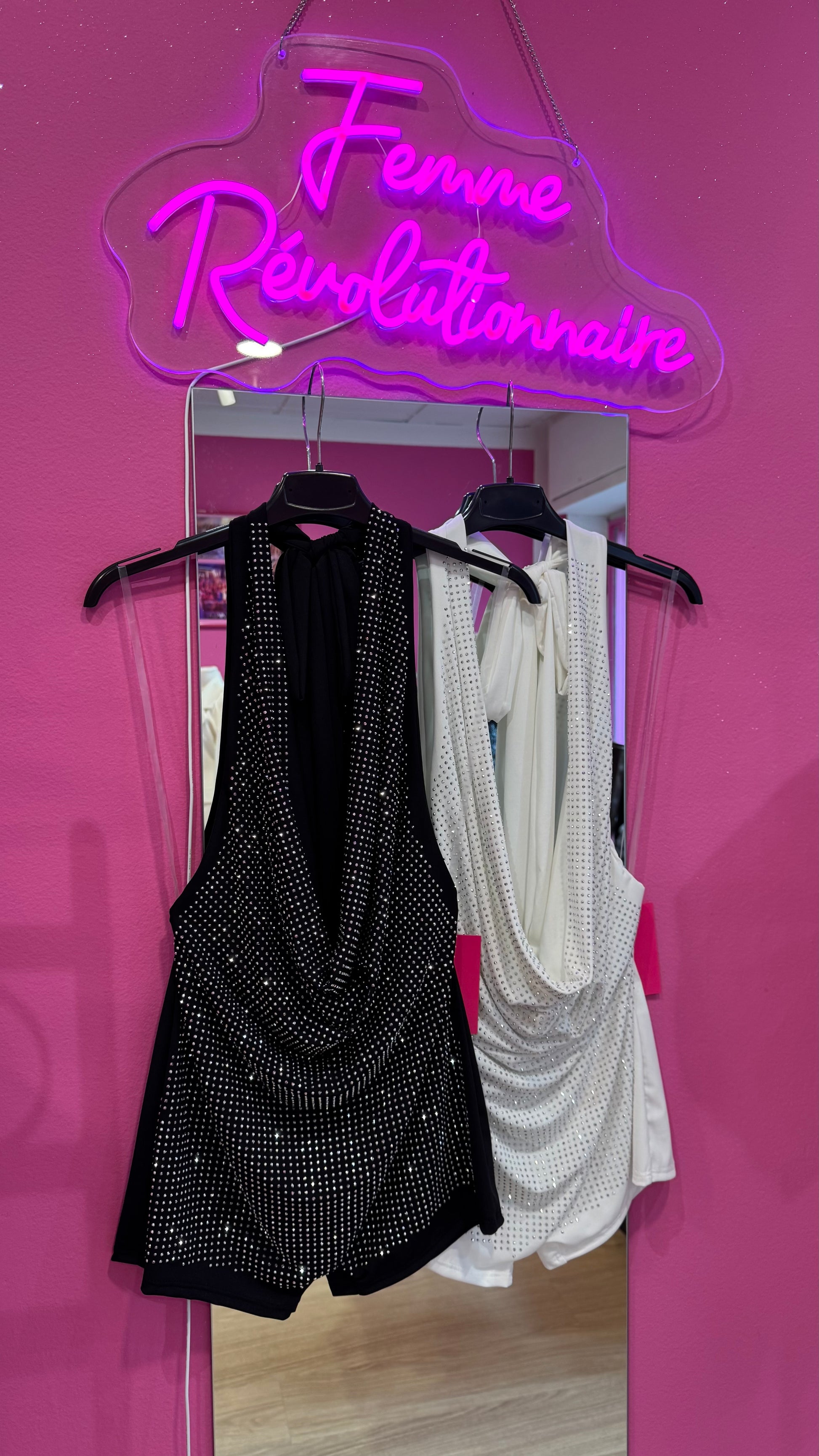 ricoperto di brillantini argento, con schiena scoperta e allaccio regolabile al collo 😍🩷 Taglia unica elasticizzata